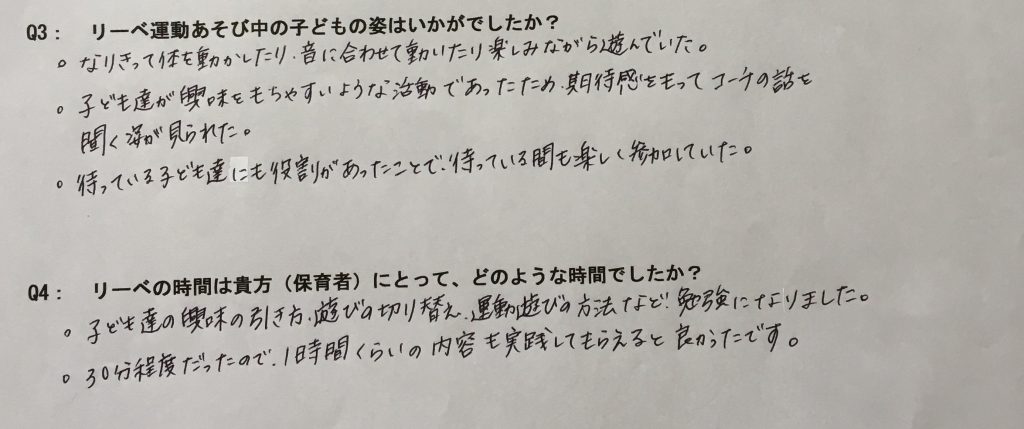 Q:リーベ運動あそびの中の子どもたちの姿はいかがでしたか?