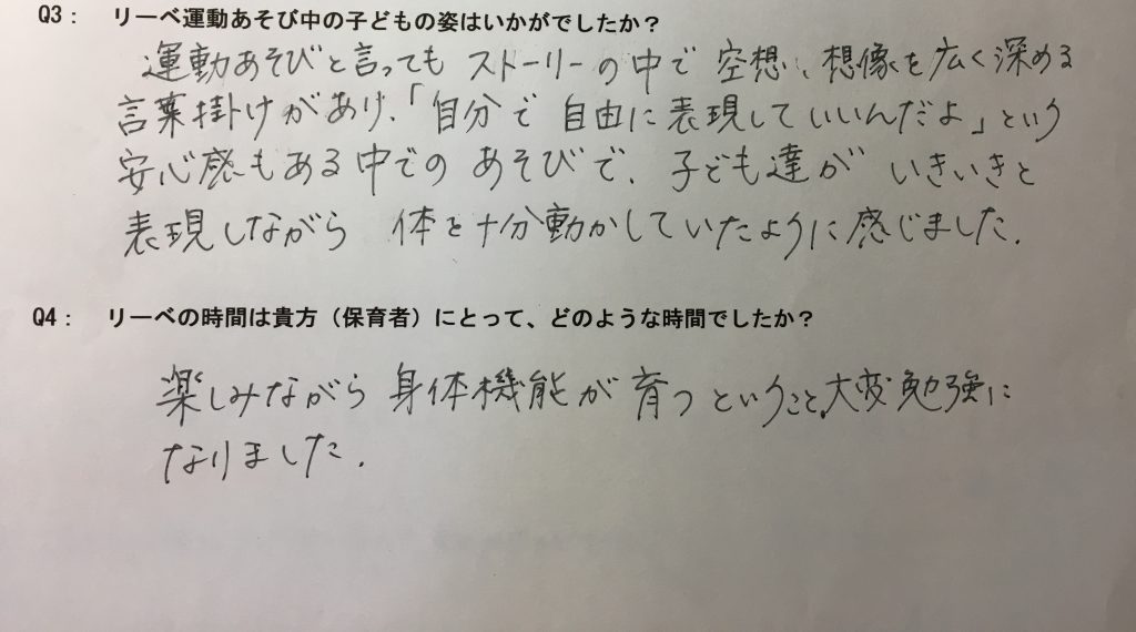 Q:リーベ運動あそびの中の子どもたちの姿はいかがでしたか?