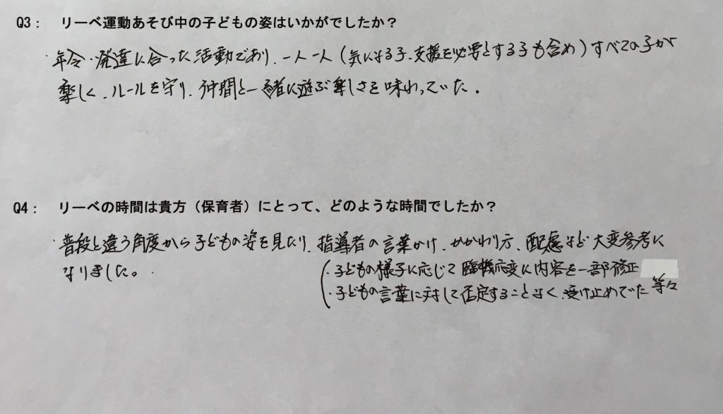 Q:リーベ運動あそびの中の子どもたちの姿はいかがでしたか?