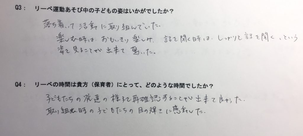 Q:リーベ運動あそびの中の子どもたちの姿はいかがでしたか?