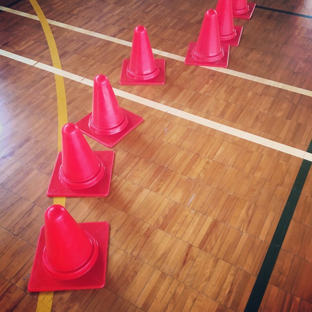 11月はどんな事をやろうかなあと事前に考えていましたが、男の子が体育館に来るなりコーンを並べ始めました。
